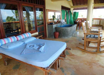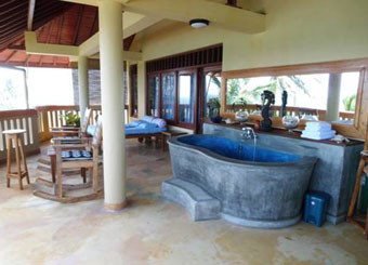 Suite 1: 2 Schlafzimmer mit Wohnbereich, 90 qm großer überdachter Balkon mit Außenbadewanne und traumhaften Blick auf den Indischen Ozean